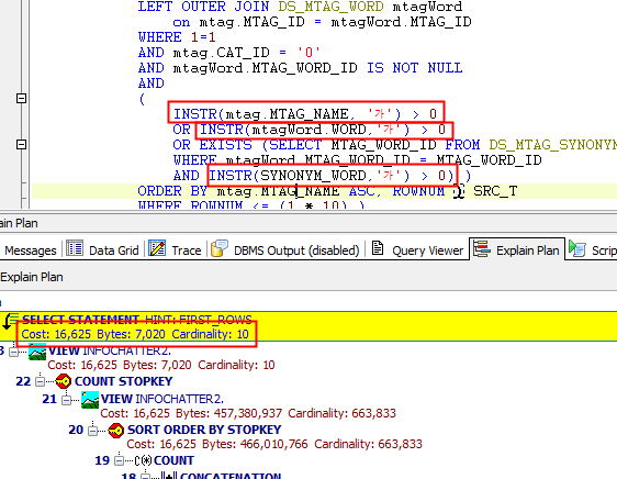 때문에 개선방법으로 INSTR로 대체하여 Cost와 실제 조회 속도가 개선됨.